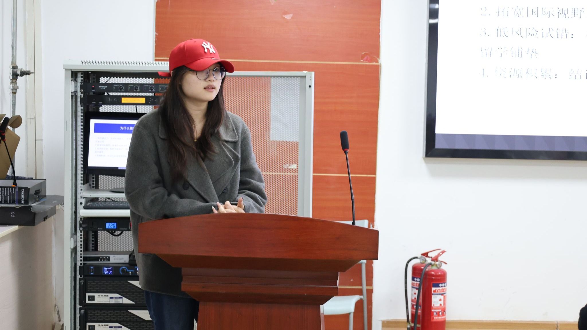 王晨翔学长压轴登场,详细介绍了美国SWT带薪实习项目。他提到项目全程为全英文环境,对语言能力要求较高,且赴美签证办理流程繁琐、准备周期较长。同时他也分享,持有该项目相关签证可享受韩国免签三个月的便利政策,为同学们带来了实用的出行信息。