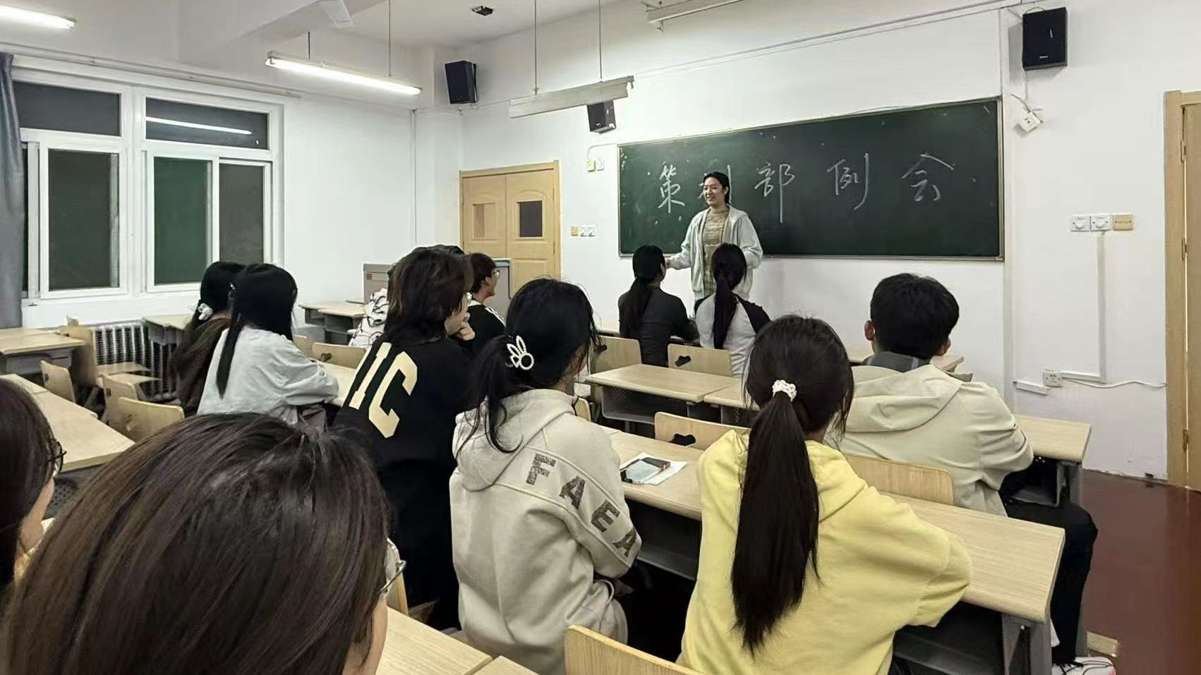 例会当日文体部于4104教室明确职能准则,以“文体传情”策划志愿主题演出、组织志愿者体育团建,传志愿精神、强凝聚力;需有文艺能力,开朗善控场,具执行应变力,增志愿感染力。