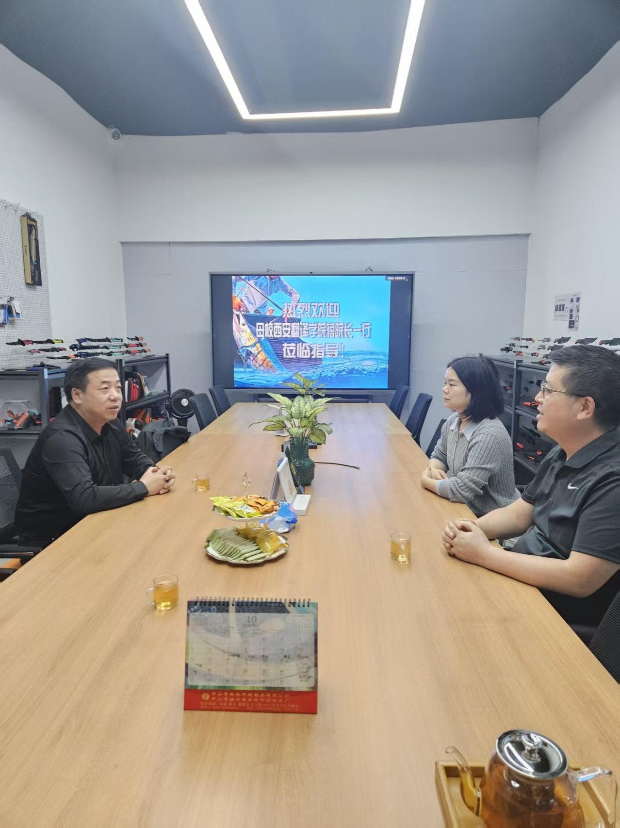 随后,蒋小军走访了位于珠海的亿泽湾科技有限公司,该公司总经理李鹏刚为我校2004级国际经济与贸易专业校友。他深情回顾了在母校求学期间“真实诚信,踏实做人”的品格熏陶,并表示这是支撑其职业发展与创业历程的重要精神财富。李鹏刚鼓励学弟学妹勇于走出舒适区,积极赴沿海地区实习就业,在实践中锻炼能力、拓展视野。他提出,“舞台再大,不上台就只是观众”,呼吁同学们增强自信、敢于行动,在实干中成就更好的自己。座谈结束后,双方就共建学生实习与就业基地达成初步意向。