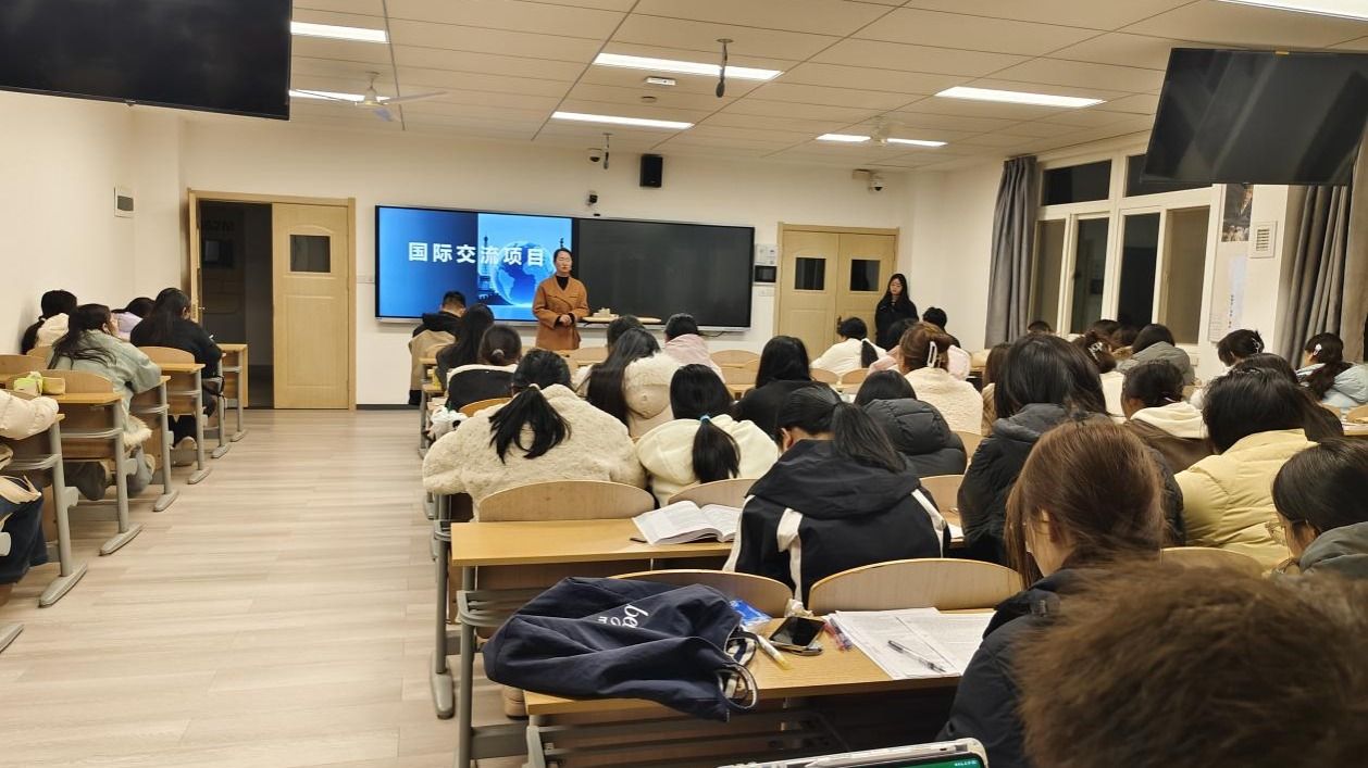 随后,辅导员刘媛媛老师详细介绍了我校丰富的国际交流项目及配套资助政策。她结合PPT内容,系统梳理了从“大一启航”到“大四聚焦”各阶段的核心项目,包括本硕连读、免费交换、带薪实习、境外就业、短期游学等多种形式。刘老师特别指出,作为外语专业学生,融入纯英文环境学习交流至关重要。她鼓励同学们根据自身情况选择适合的项目,如语言门槛较低的研学之旅、经济压力较小的带薪实习等,并强调学校提供的资助覆盖面广、力度大,可有效减轻学生的经济负担。