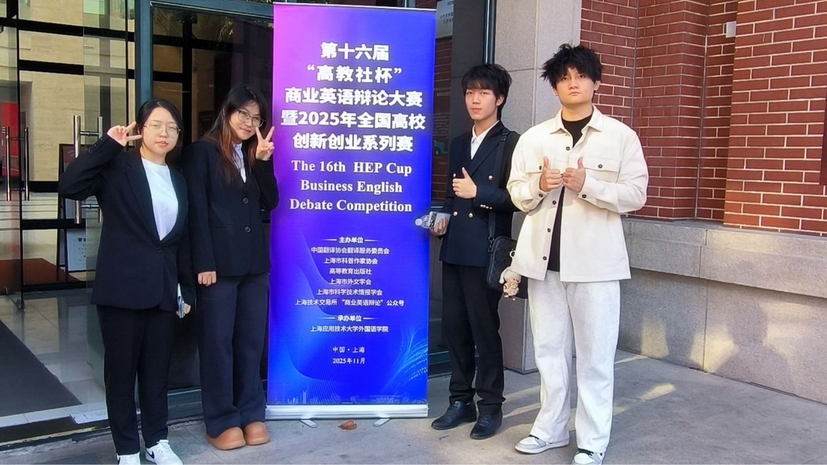 11月29日至30日,第十六届“高教社杯”商业英语辩论大赛暨2025年全国高校创新创业系列赛总决赛在上海应用技术大学圆满落幕。经过资格赛、初赛、分赛区决赛等多轮角逐,我校英文学院商务英语专业学生吴传林、庞柯、黄静涵、张家铭组建的“商海星舰队”凭借扎实的商业素养、流利的英语表达和敏锐的思辨能力,在全国众多参赛队伍中脱颖而出,最终荣获总决赛一等奖铜奖,为我校赢得了荣誉。