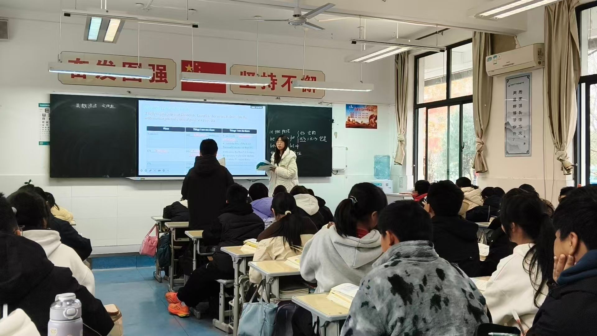 在备课环节,实习生们结合教材内容和学生实际水平认真设计教学方案。例如,在写作课教学中,他们按照“引入—学习思维导图—理解文章结构—仿写—独立写作”的步骤循序渐进,引导学生逐步掌握写作思路与结构。在课堂上,实习生们注重调动学生参与积极性,通过提问、小组活动等方式让更多学生主动投入英语学习。在作业批改中,他们不仅认真标注错误,还针对不同学生特点写下个性化鼓励语,激发学生学习动力,增强学生的学习信心。