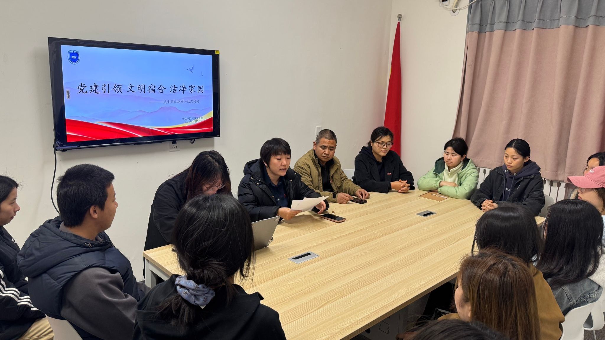 为深入学习贯彻党的二十大精神,充分发挥学生党员先锋模范作用,进一步推动党建工作进公寓、进宿舍,营造安全、整洁、文明、和谐的住宿环境,3月23日,英文学院第四党支部在学生公寓开展西十二公寓开展“党建引领·文明宿舍·洁净家园”主题党日活动。